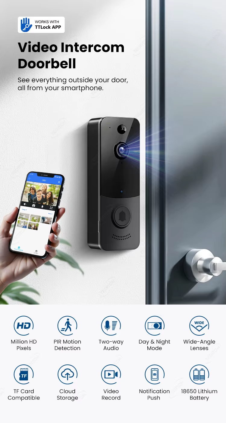 TTLOCK VIDEO ZVONČEK- Bezdrôtový Smart WIFI video zvonček -zvonenie iba na mobil.