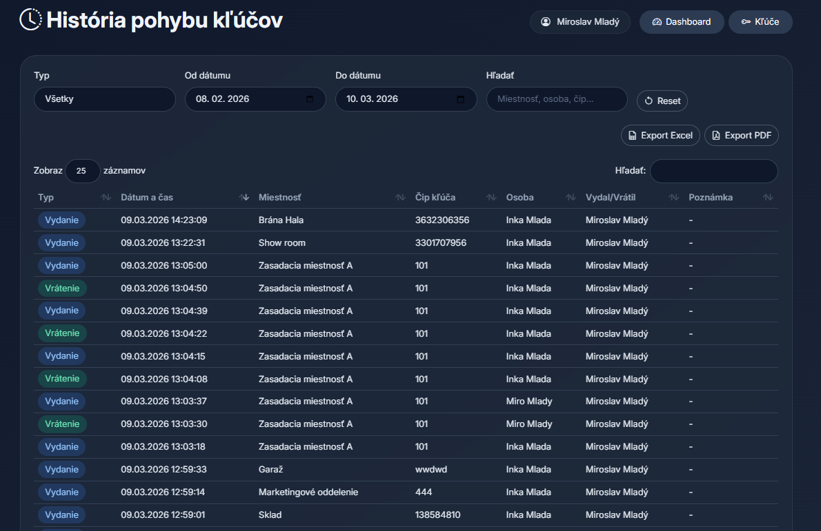 🔹 Vydávanie a vracanie kľúčov – niekoľkými kliknutiami
