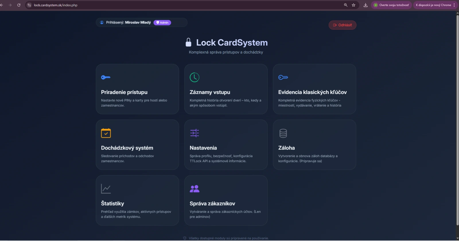 Vytváranie PINov a kariet pre hostí aj zamestnancov