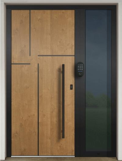 Moderné madlove dvere. otvorte otlačkom prsta mobilom.